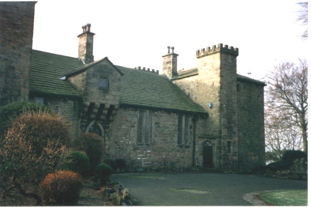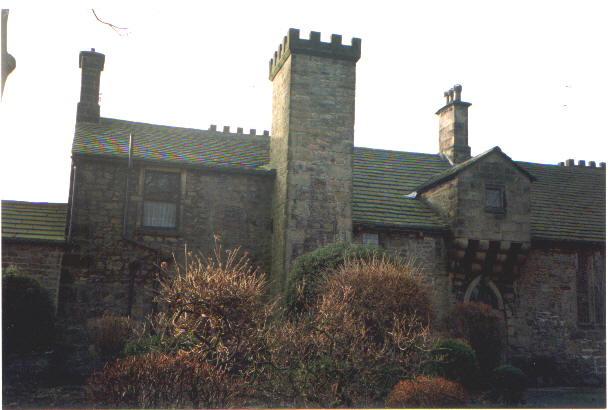 "Manor house of C15 much altered C16 and C19. Rubble with slate roofs, hipped at right hand end. Now of 2 storeys but originally composed of a one-storey hall with chamber block and kitchen block at either end, in a single range. Ends of hall marked by 4 turrets, 2 on each front. The hall was lit by paired tall trefoil-headed lights, 2 pairs of which survive to right hand side of the doorway. Doorway is early C20 Gothic but defended by a small gabled machicolated dormer. The right hand block has a blocked 2-light round-headed window to ground floor and a blocked doorway facing the hall roof which may have served lost battlements.Derek made copies of the photographs which accompanied the listing, seen below. Derek also mentioned that Robert W. W. has a copy of the sale document and, as he recalls, it refers to Robert senior as "occupying" the Hall. The Farm, a nearby property used by the family, was rented from the local Urban District Council."At the rear the windows are all C19 or early C20 with slightly arched heads, mostly sashes. The interior (not seen) is said to contain a large elliptical-headed fireplace and woodwork of early C20 by Robert Thompson of Kilburn. Although much altered, this is a rare survival of a fortified manor house built in a single range, of which more remains to be discovered, and the building merits a high grade in consequence."